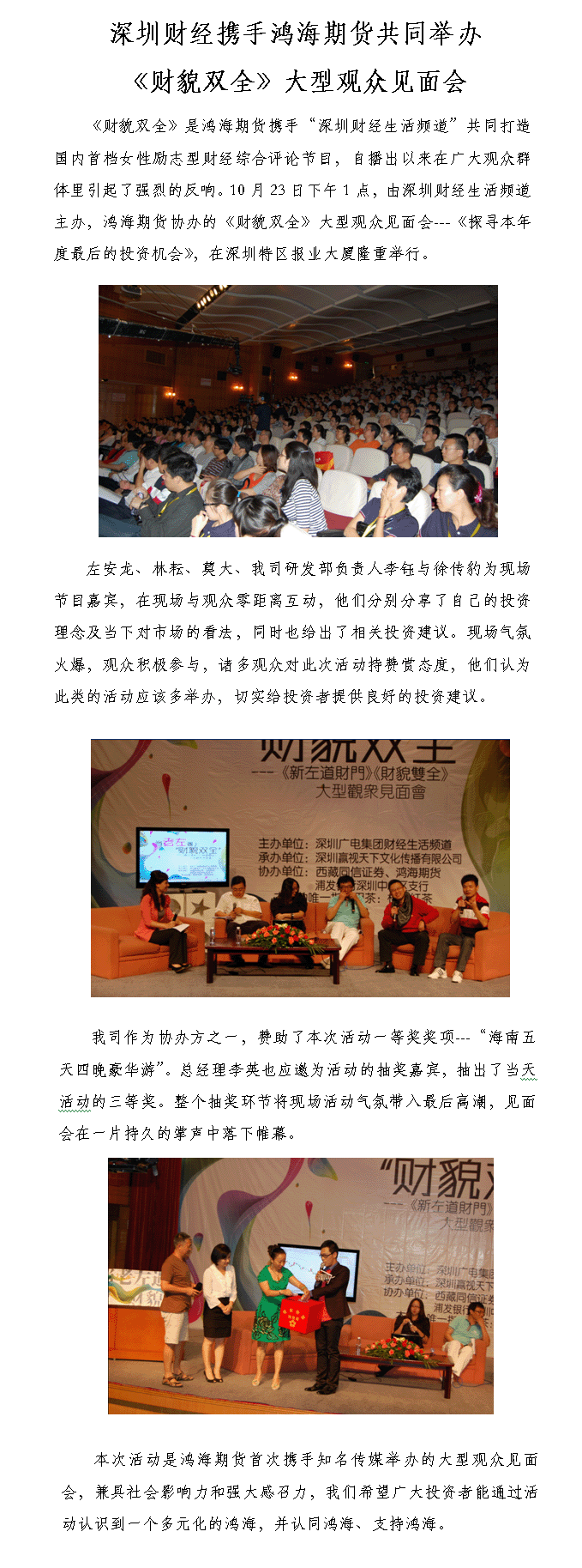 深圳财经携手鸿海期货共同举办《财貌双全》大型观众见面会