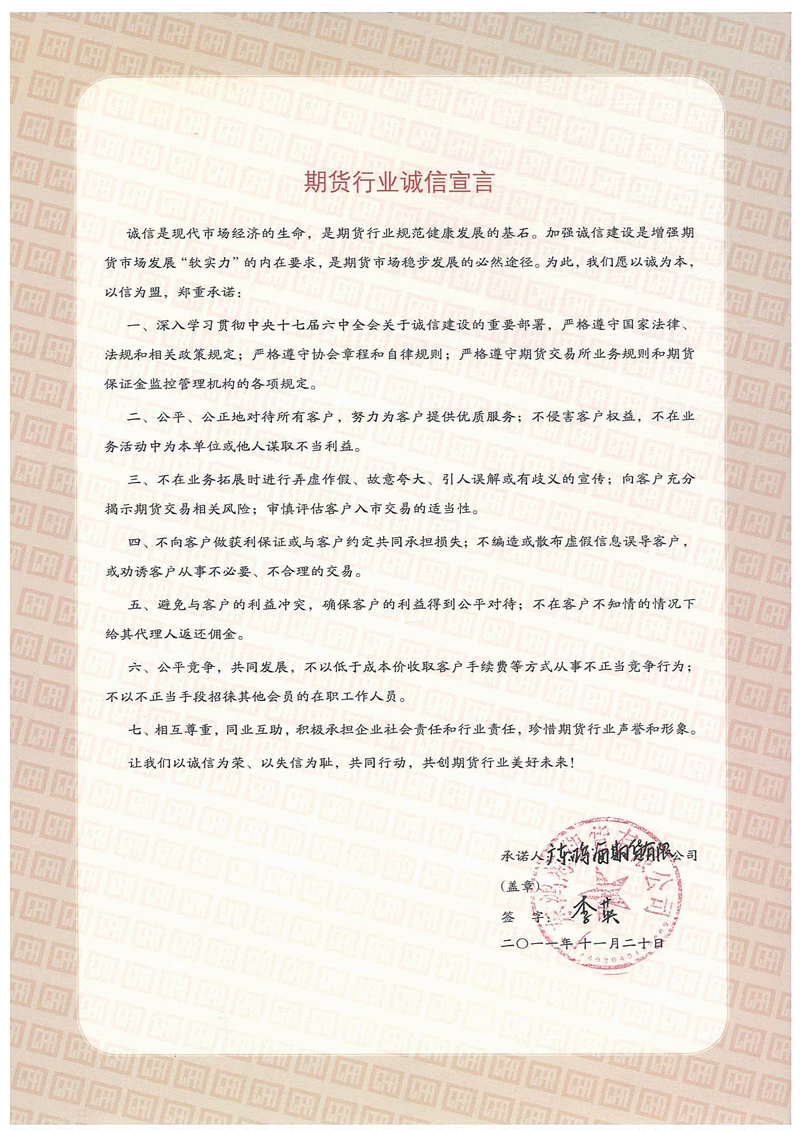 期货业诚信建设宣传