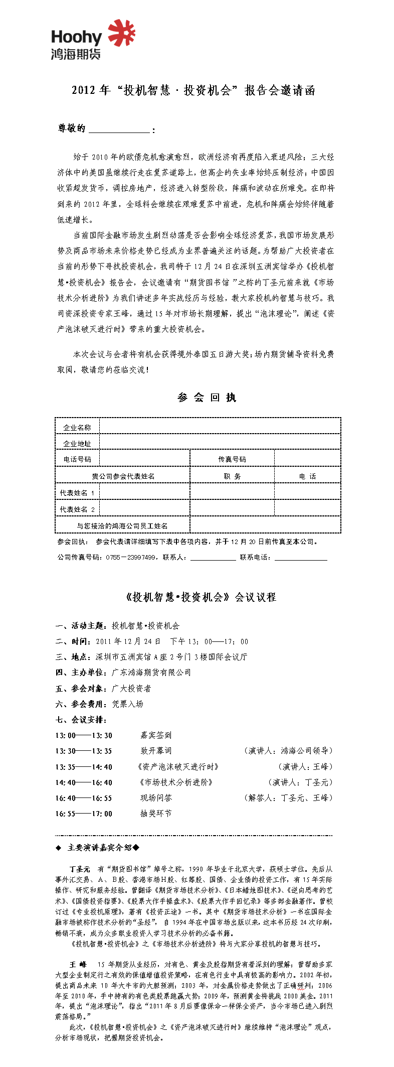 2012年“投机智慧•投资机会”报告会邀请函