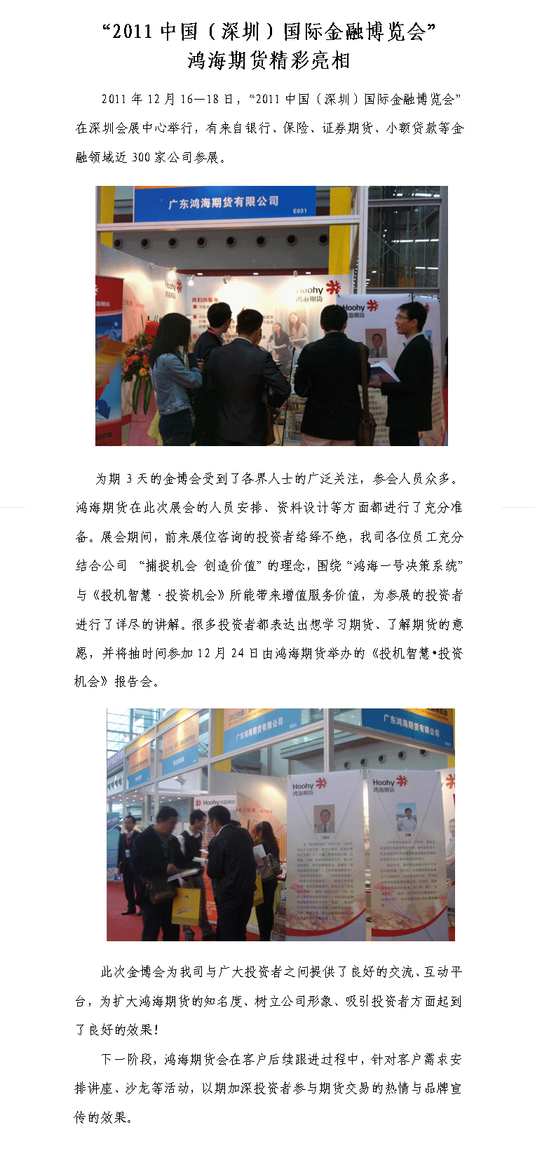 “2011中国(深圳)国际金融博览会”鸿海期货精彩亮相