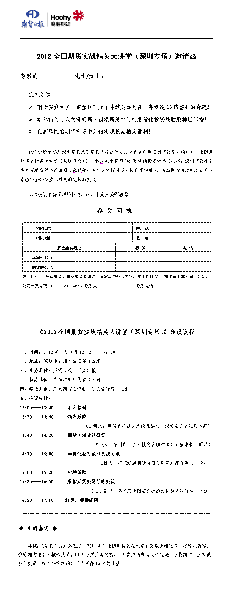 2012全国期货实战精英大讲堂(深圳专场)邀请函