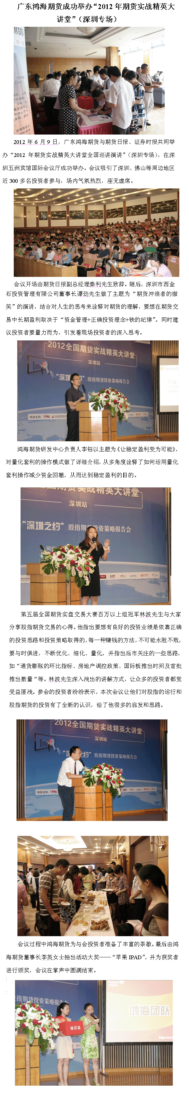 广东鸿海期货成功举办“2012年期货实战精英大讲堂”(深圳专场)