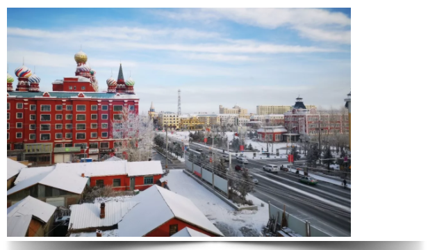 下了雪的额尔古纳,纵使早起出了太阳,积雪依旧没有融化。整个城市像一个小小的童话世界。道路两旁尽是雾凇,美不胜收。