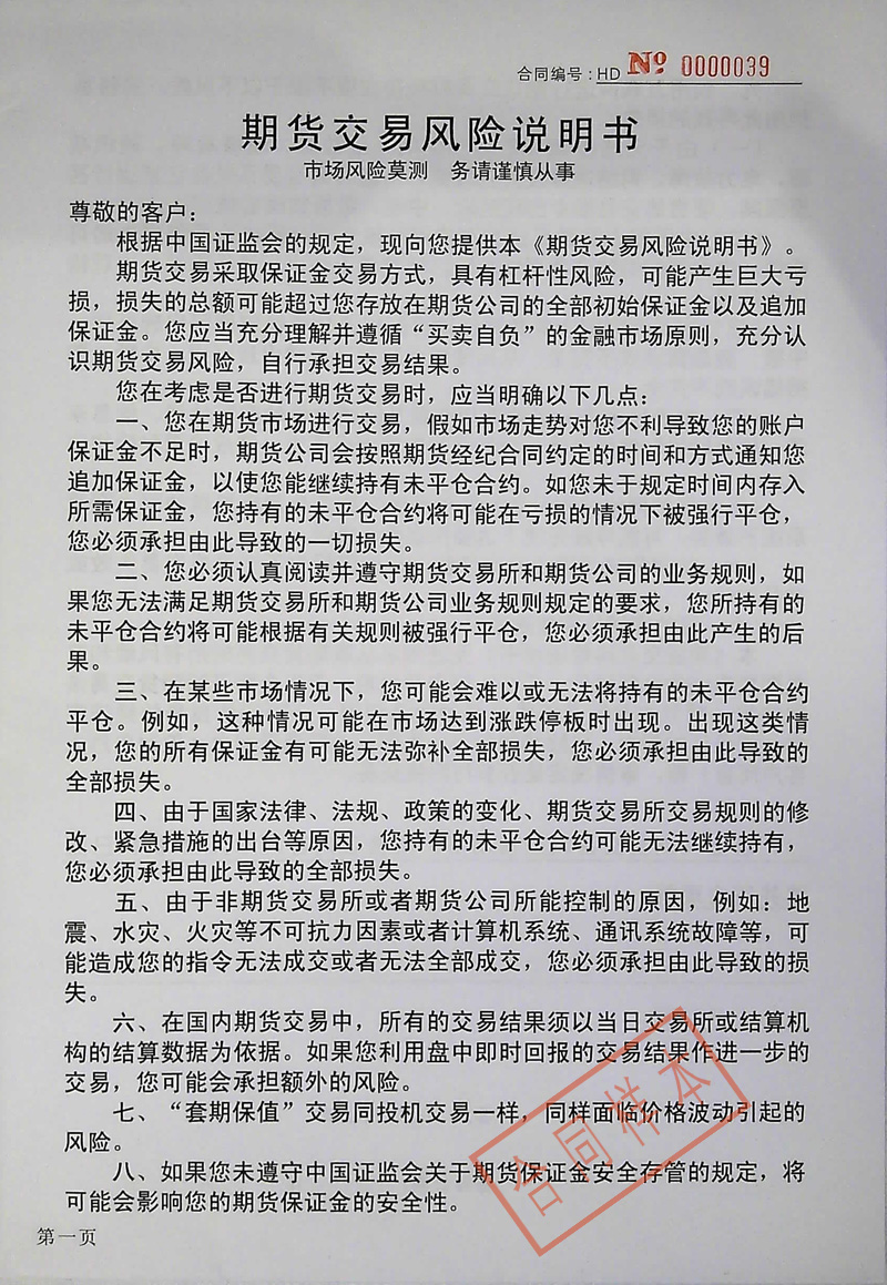 suncitygroup太阳新城 - 期货经纪合同样本
