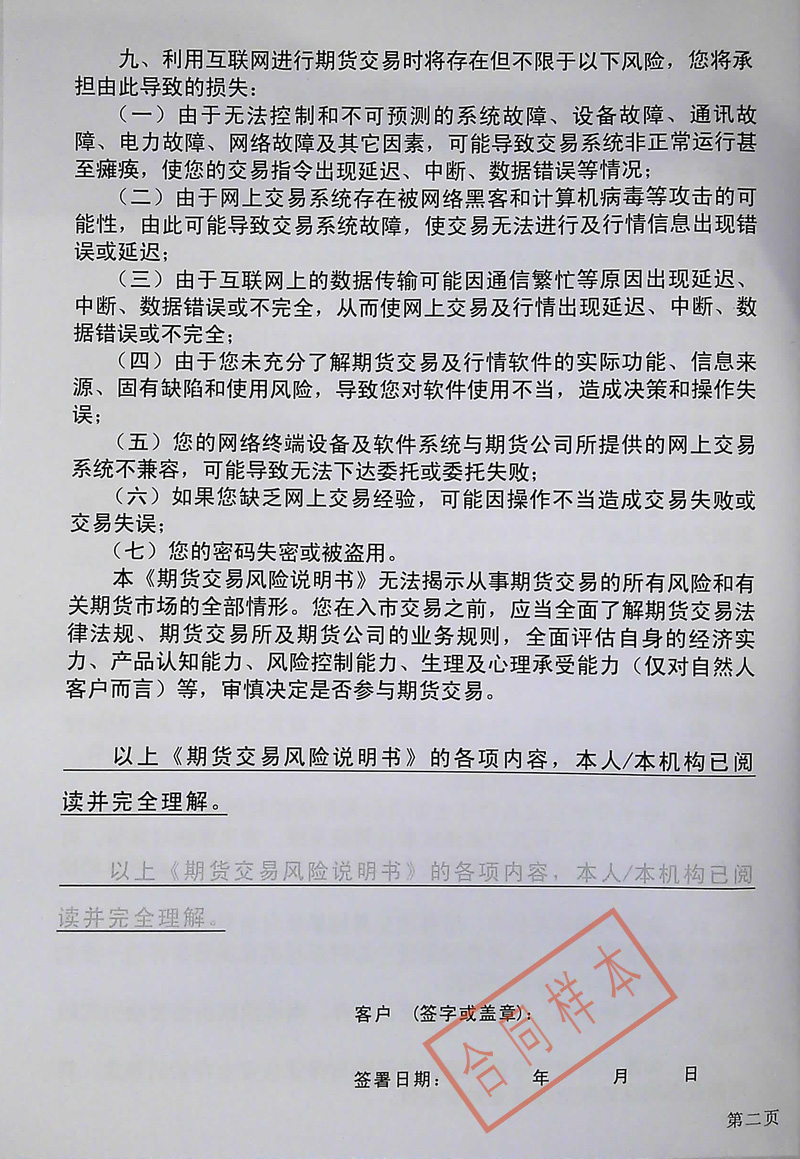 互联网开户风险揭示