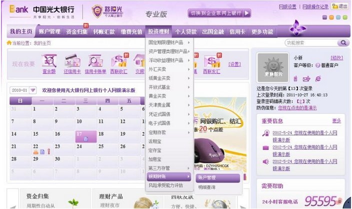1.客户进入个人网上银行