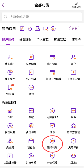 2.点击“银期转账”