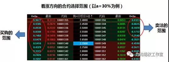 通常而言,期权买方是希望波动变大,标的能往一个方向涨涨涨或跌跌跌,由于delta指标是期权价格变化的活力,因此在买入期权时,不宜选择delta绝对值太小的期权去买入,操作上可以认定只买入delta绝对值大于a%(比如30%)的期权,圈定了这个买入范围后,遵循delta绝对值尽量不能小,同时权利金成本也不能太贵的原则,对比买入自己心目中性价比最高的期权就行了。