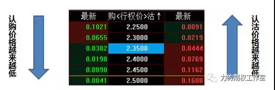 同月份的认购期权,行权价越高,则期权价格越低;同月份的认沽期权,行权价越低,则期权价格越低。