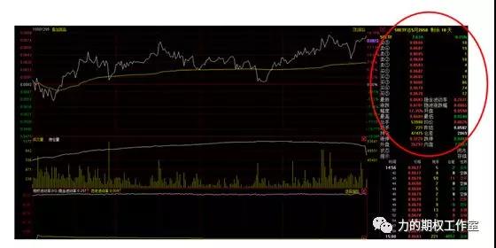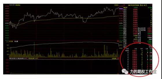 我们仍然来看下面这张图,刚才说了右上角表示的是这份期权合约的盘口和交易信息,而右下角所圈出的部分是什么呢?