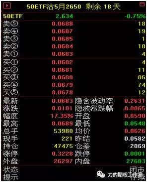 在“T型报价”界面里随意地双击一个期权合约,就可以进入如下图的界面: