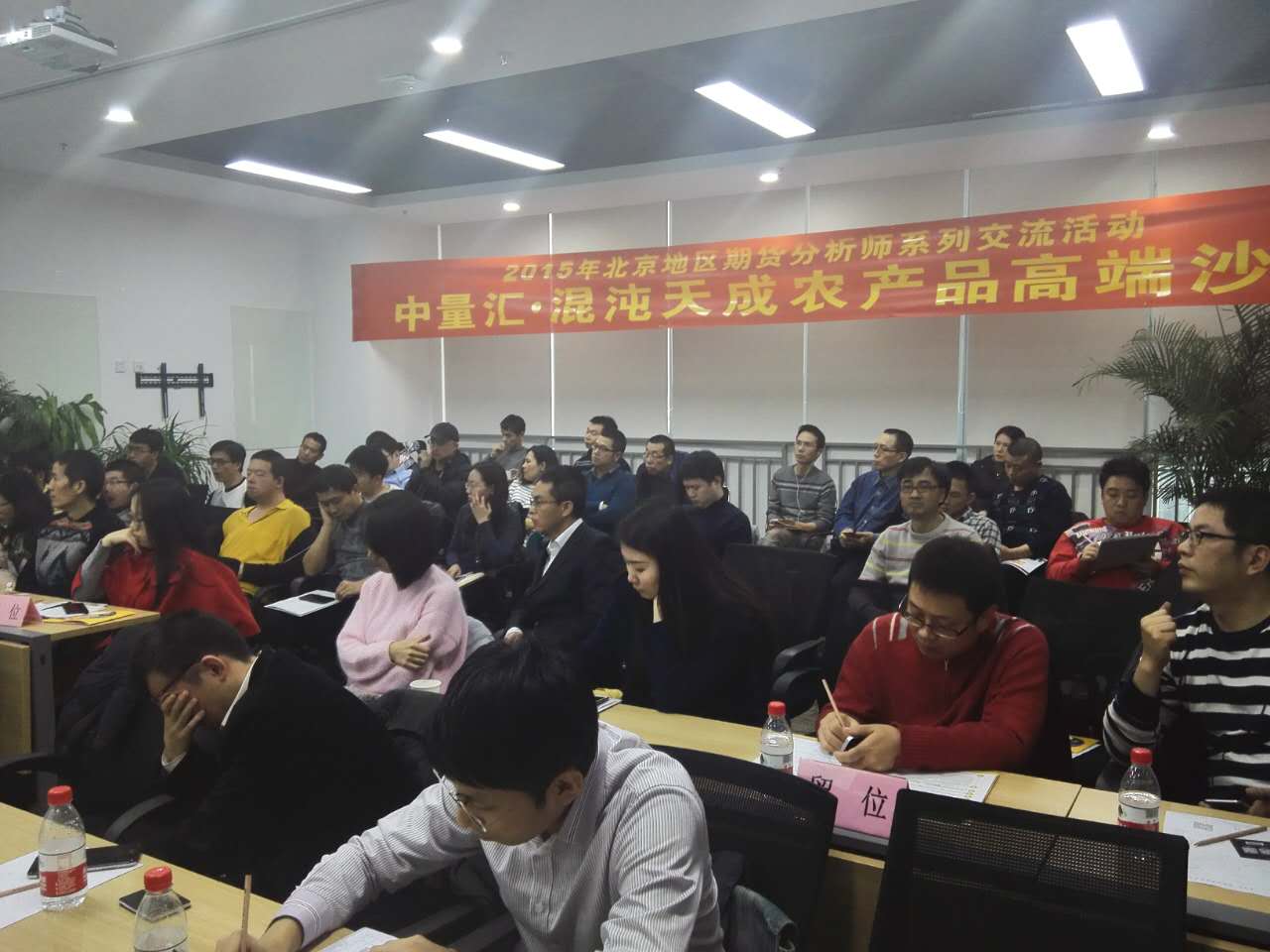 2015年12月12日,年度收官之际,中量汇�suncitygroup太阳新城农产品高端沙龙在北京国投财富广场如期举办,此次活动由大连商品交易所和北京期货商会主办,suncitygroup太阳新城北京营业部和中量网承办,主要议题是2015年农产品行情分析和2016年展望,来自产业机构、私募基金和专业投资者50多人与会。